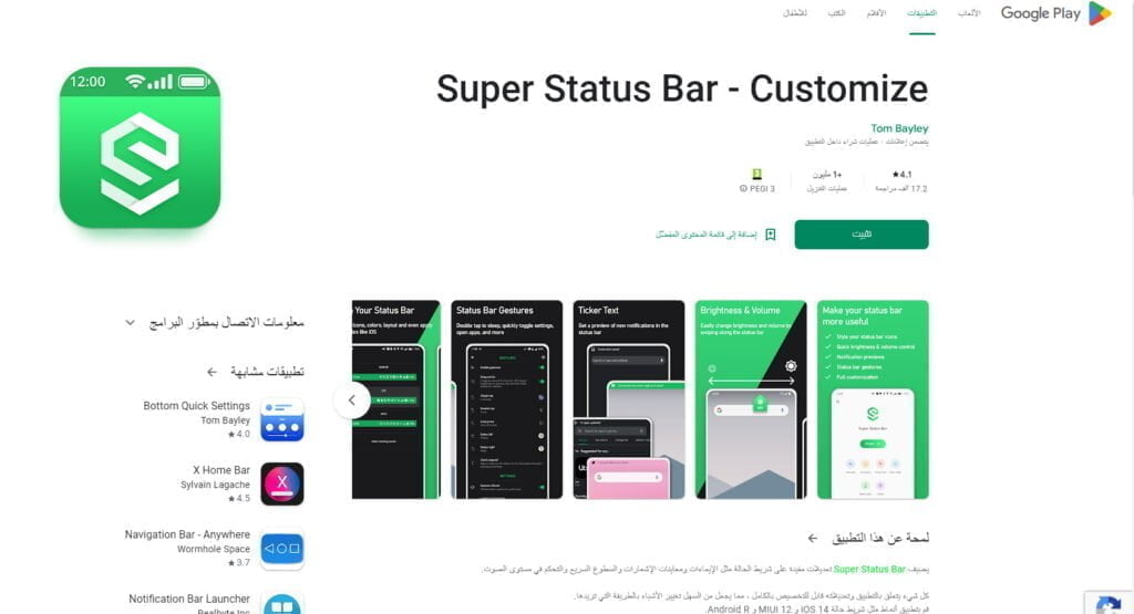 تستطيعون تحميل تطبيق سوبر ستاتوس بار Super Status Bar أفضل تطبيق يساعدكم في تعديل شريط الحالة في الهاتف للاندرويد من متجر جوجل بلاي مجانا وذلك من خلال:
