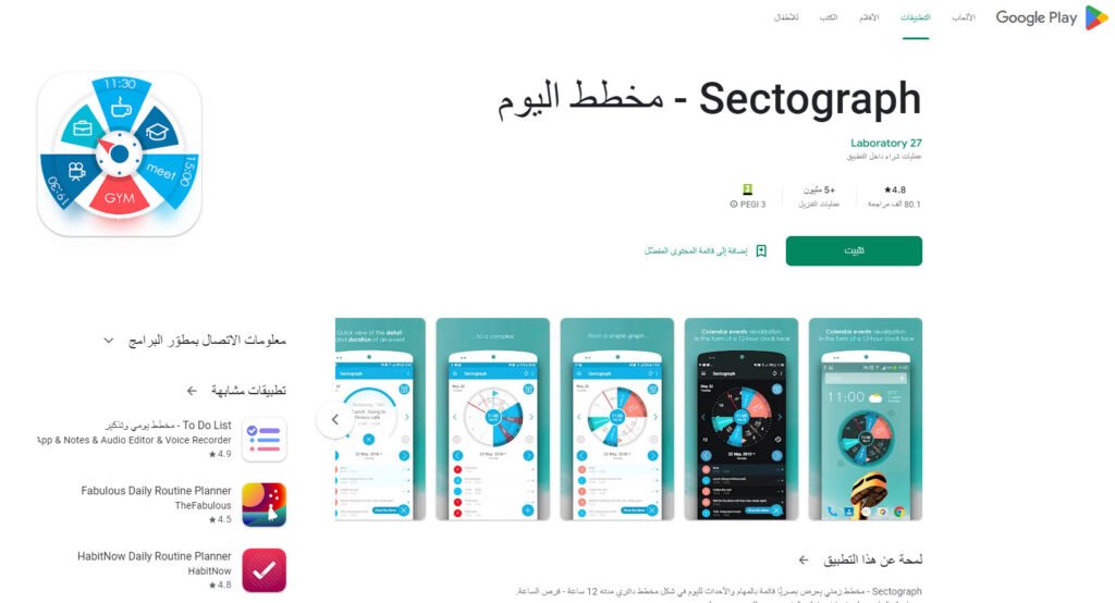 يمكنكم تنزيل تطبيق مخطط اليوم Sectograph ليساعدكم في تنظيم وتخطيط الحياة اليومية من متاجر الهواتف الذكية للاندرويد مجانا وبكل سهولة من خلال: