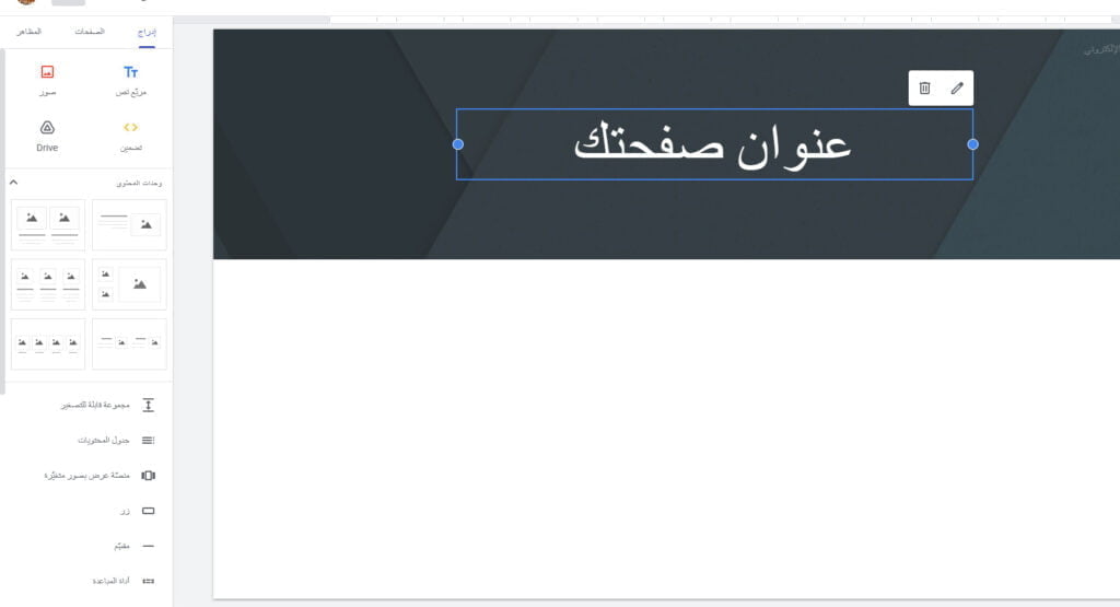 - أضف محتوى إلى موقعك، مثل النصوص والصور ومقاطع الفيديو والأدوات.