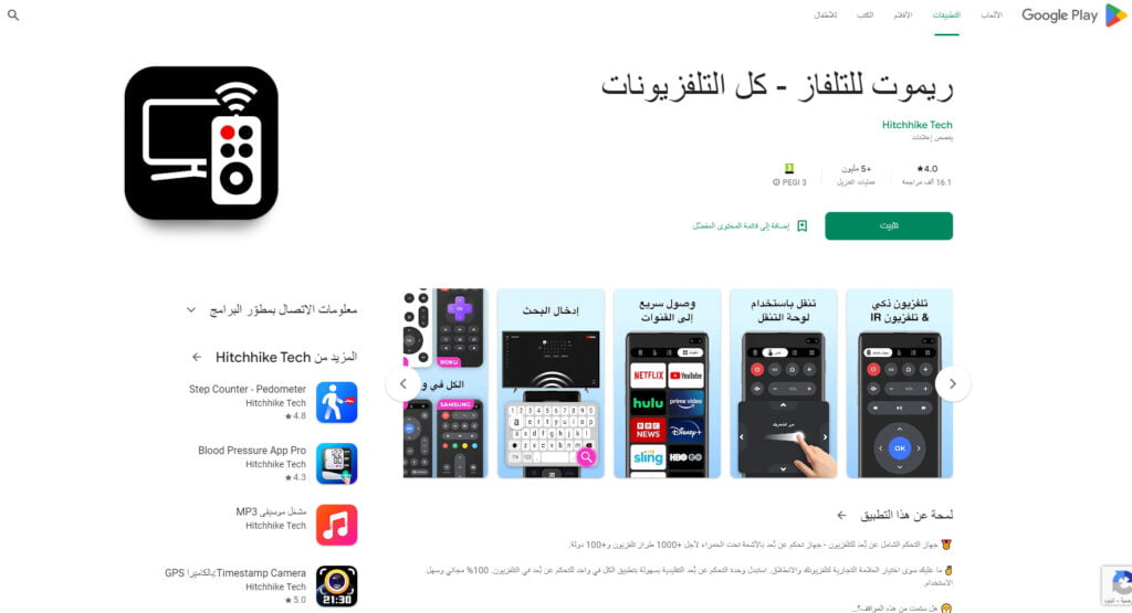 يمكنكم تنزيل تطبيق ريموت للتلفاز – كل التلفزيونات أفضل جهاز للتحكم عن بعد لجميع التلفزيونات من متجر جوجل بلاي لهواتف الاندرويد مجانا وبكل سهولة من خلال: