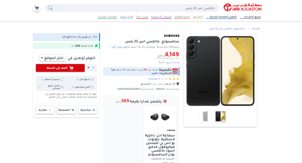 ما هو سعر هاتف سامسونج جالكسي اس 22 بلس Samsung Galaxy S22 Plus 5G في متجر مكتبة جرير السعودية؟