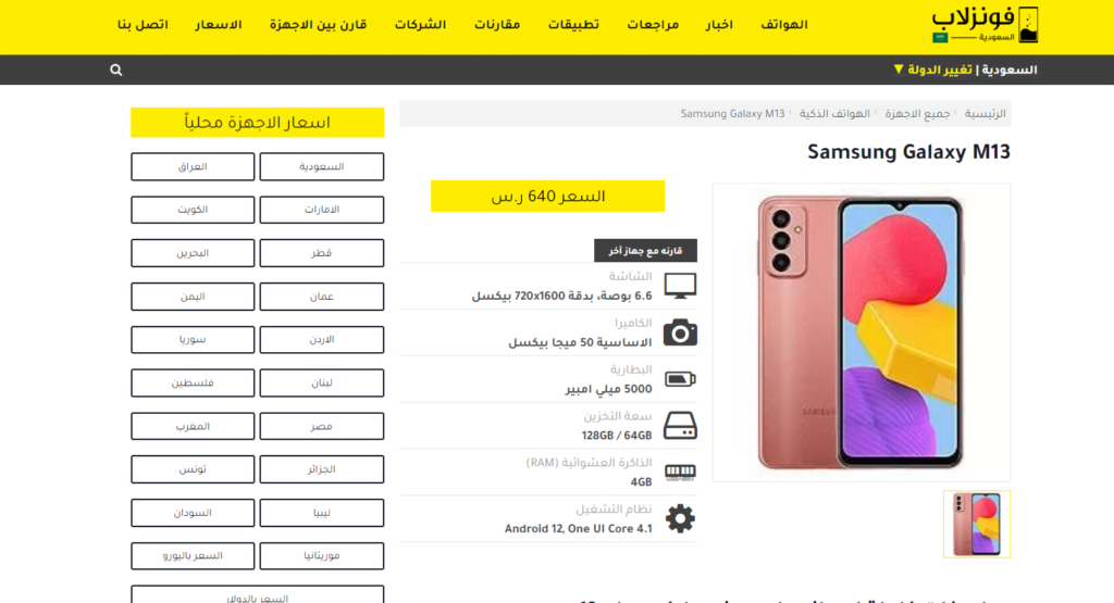 ما هو سعر هاتف سامسونج جالكسي ام 13 Samsung Galaxy M13 في السعودية؟