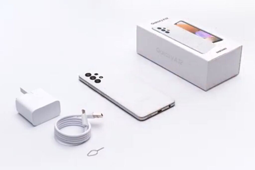 ملاحظة: تحتوي علبة هاتف Samsung Galaxy A32 على الأشياء التالية:
