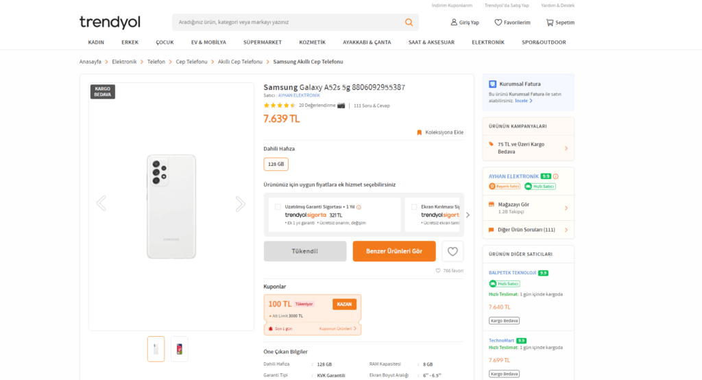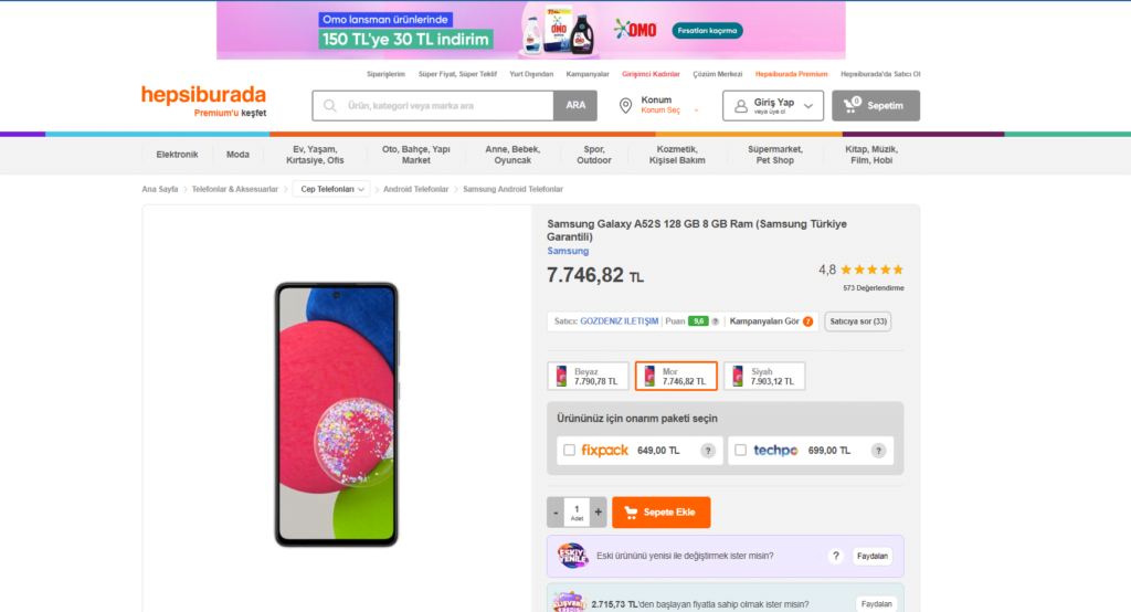 يبلغ سعر هاتف سامسونج جالكسي اي 52 إس في متجر هبسي بوردا 7746 بسعة تخزينية 128جيجابايت.