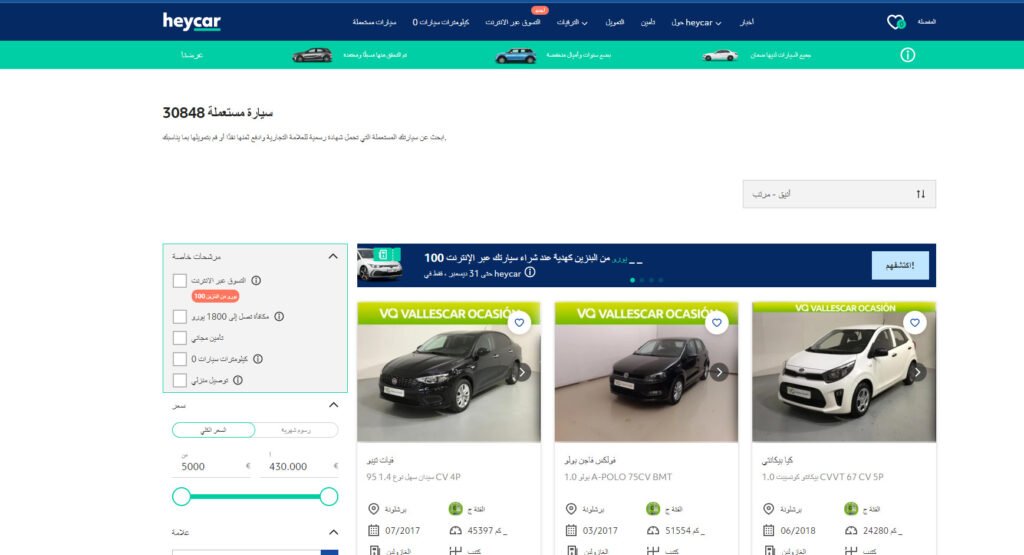موقع هيكار heycar سوق إسبانيا للسيارات المستعملة