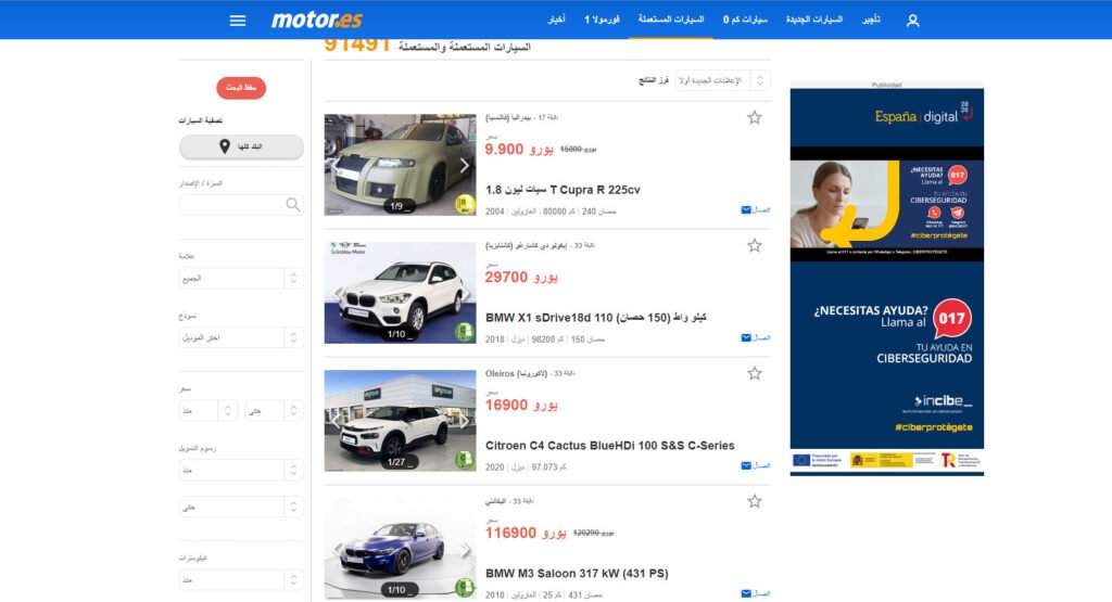 موقع موتور إس Motor.es لمعرفة أسعار السيارات في اسبانيا