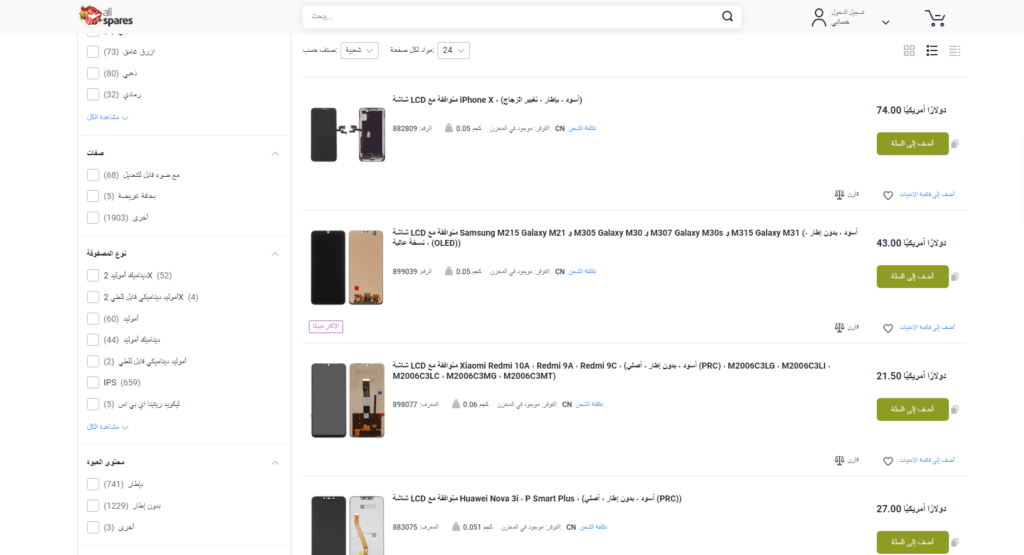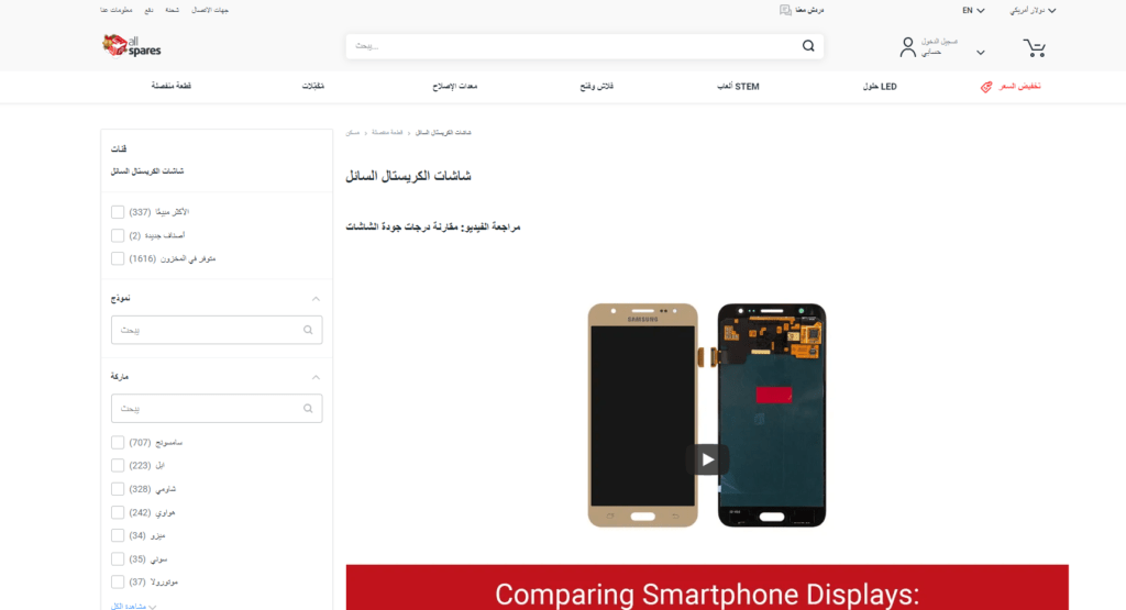 موقع أُل سبرس All Spares أشهر موقع لشراء شاشة هاتف أصلية