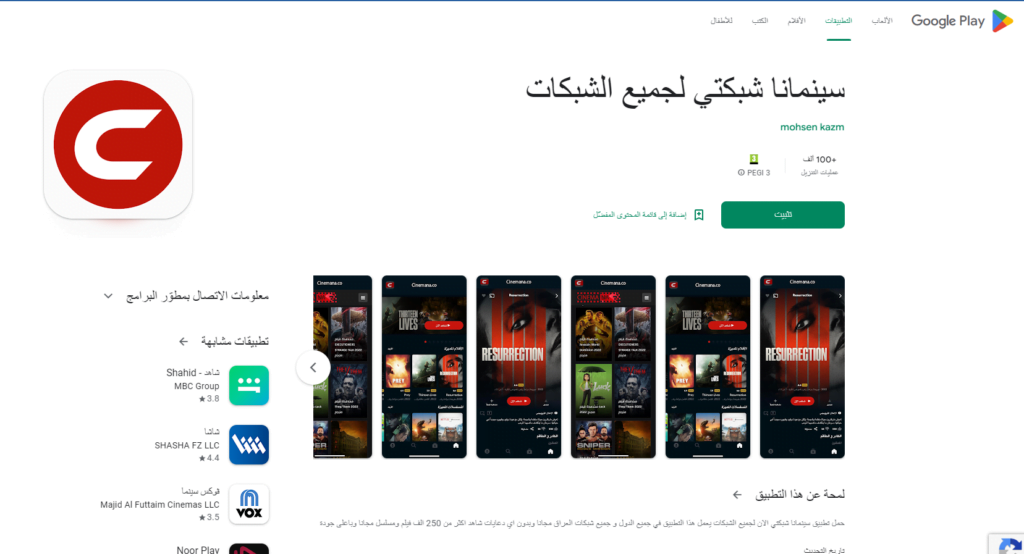 يمكنكم تنزيل تطبيقطبيق سينمانا شبكتي لمشاهدة أفلام مترجمة مجان من متجر جوجل بلاي لهواتف الاندرويد مجانا وبكل سهولة من خلال: