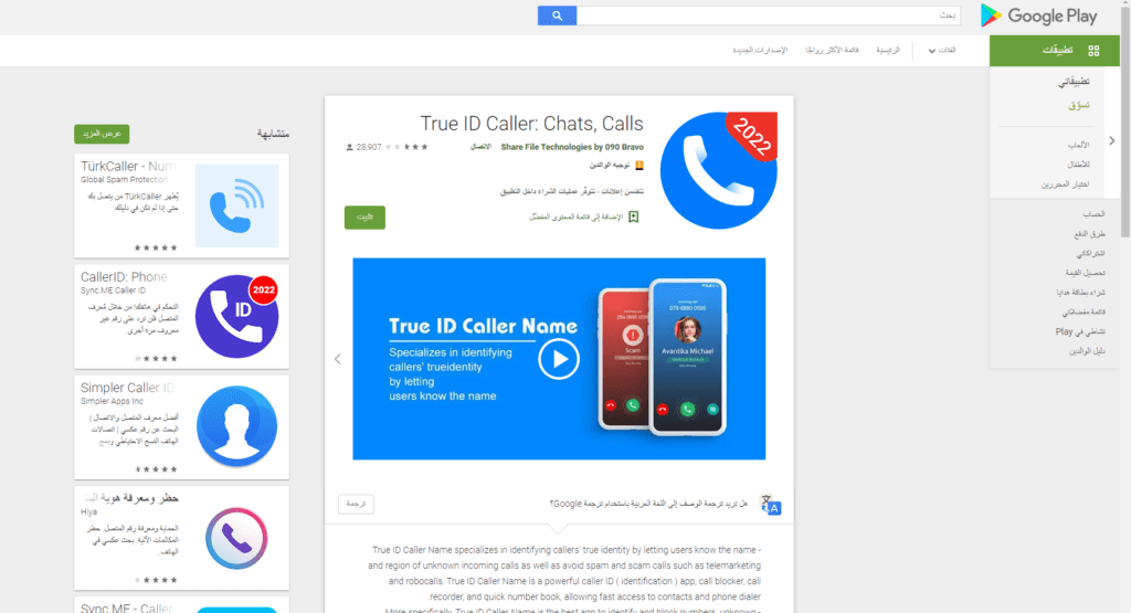 - تطبيق True Caller ID لمعرفة اسم المتصل بالهاتف الأندرويد