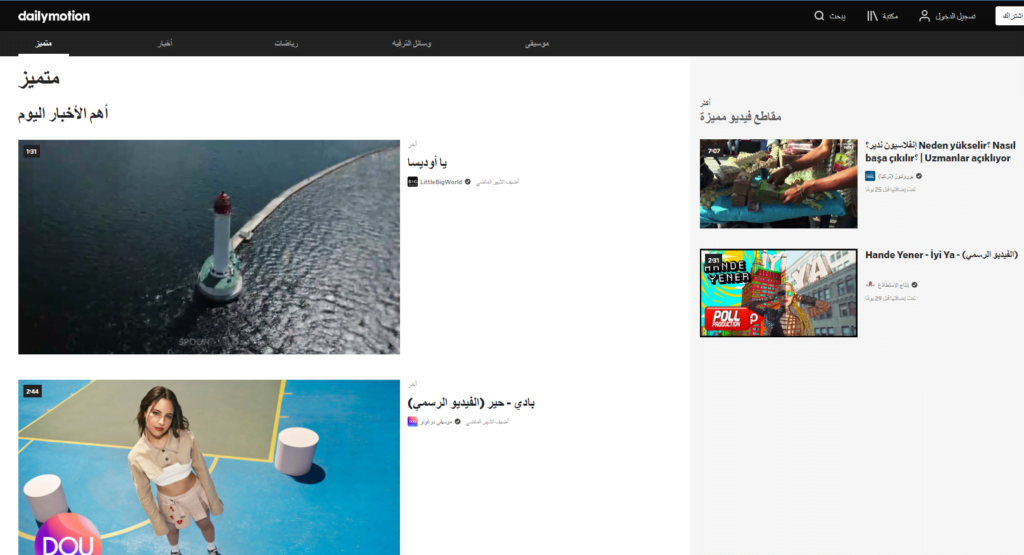 - موقع ديلي موشين Dailymotion.