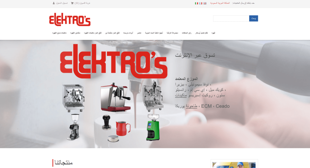 موقع elektros إلكتروس من المواقع الرائعة التي تبيع ماكينات القهوة وطواحين البن وقطع الغيار والملحقات عبر الإنترنت ومن أهم مميزات الموقع أن يشحن إلى جميع أنحاء العالم بكل سهولة وإلى الدول العربية وما عليكم سوى تحديد الوجهة التي ترغبون بها.