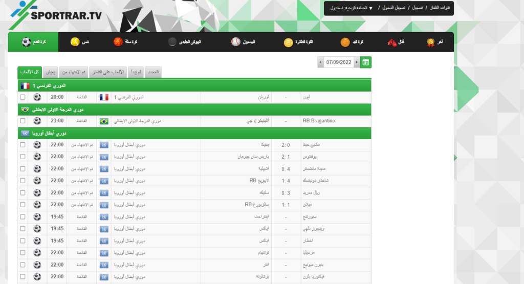 موقع sportrar سبورترار من المواقع المميزة لمتابعة مباريات الدوريات الأوروبية والعالمية وهو أفضل موقع لبث المباريات مباشر بدون تقطيع لأنه يحتوي على سيرفرات قوية تؤمن لكم متابعة المباريات العالمية وخصوصاً دوري أبطال أوروبا ومباريات كأس العالم 2022 بجودة عالية وبشكل مجاني.