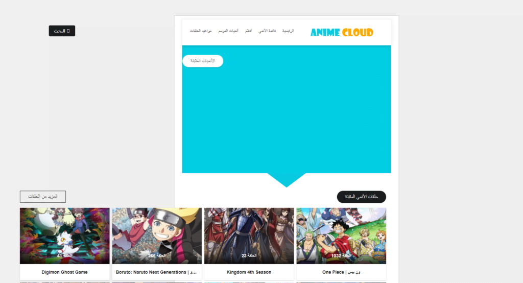 موقع Anime Cloud انمي كلاود أفضل موقع لمشاهدة الانمي حيث يتيح لكم الموقع مشاهدة العديد من المسلسلات والأفلام المختلفة والمدبلجة إلى اللغة العربية والتي تناسب كافة أذواق وأعمار المستخدمين بالإضافة إلى إمكانية تحميل حلقات مسلسلكم الانمي المفضل ومشاهدته لاحقا وبدون نت.