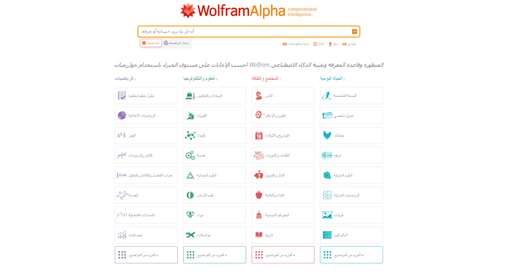 يمكنكم زيارة موقع ولفرام ألفا WolframAlpha أفضل موقع تعليمي للطلاب والاستفادة من المعلومات والخدمات التعليمية التي يقدمها الموقع مجانا من خلال: