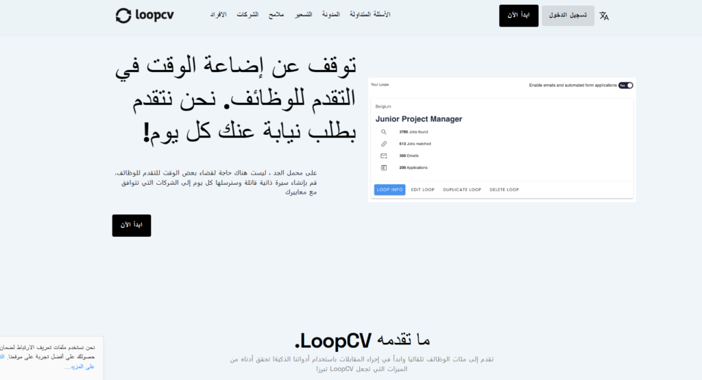 رابط موقع Loop CV أفضل موقع ذكاء اصطناعي للبحث عن وظيفة
