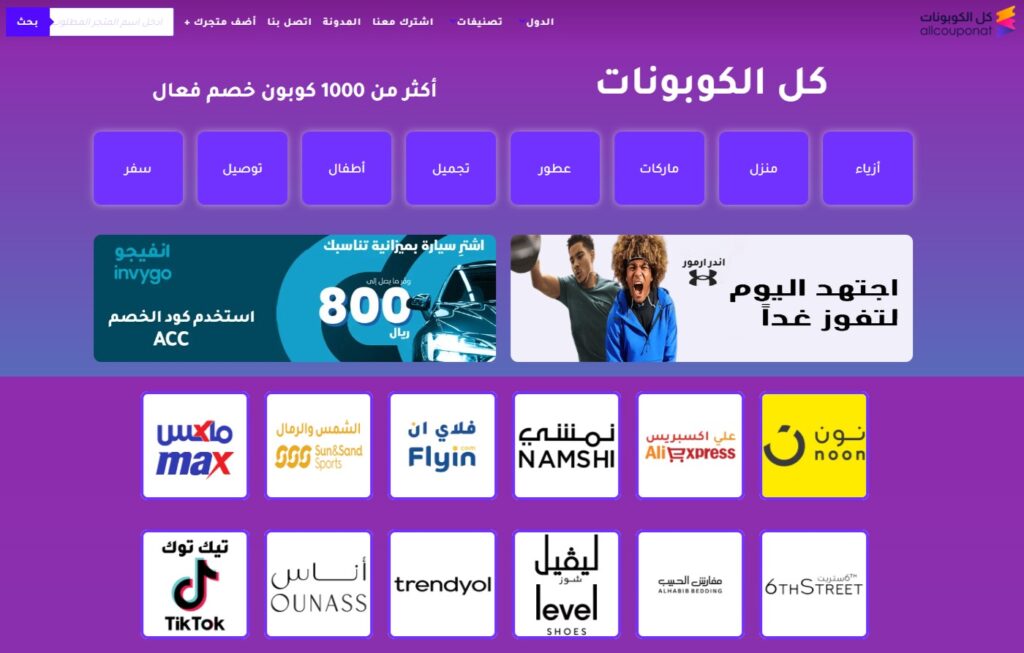 واجهة موقع كل الكوبونات Allcouponat أفضل موقع كوبونات خصم عربي