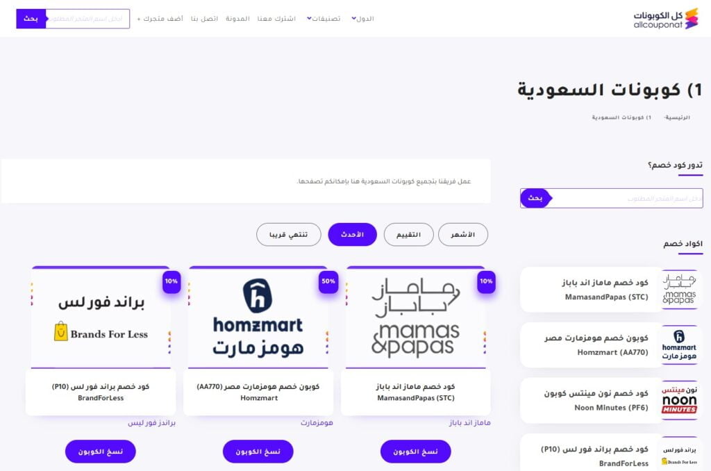 لقطة شاشة- كوبونات السعودية في موقع كل الكوبونات Allcouponat