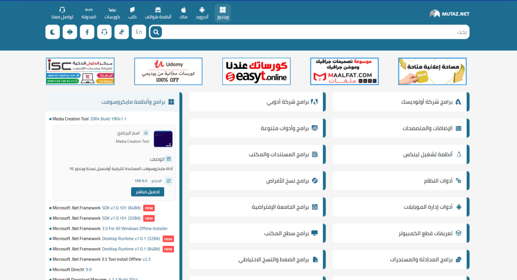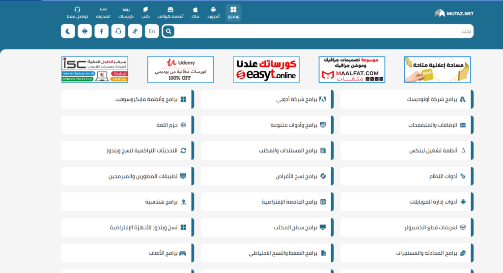 يوفر لكم موقع معتز Mutaz تنزيل برامج كمبيوتر مجانا مثل برامج وأنظمة ما يكروسوفت وبرامج شركة أدوبي وحزم اللغة والبرامج الهندسية وبرامج سطح المكتب وبرامج الحماية من الفيروسات وبرامج نقل الملفات والشبكات وبرامج استعادة الملفات وبرامج الضغط والنسخ الاحتياطي وغيرها الكثير.