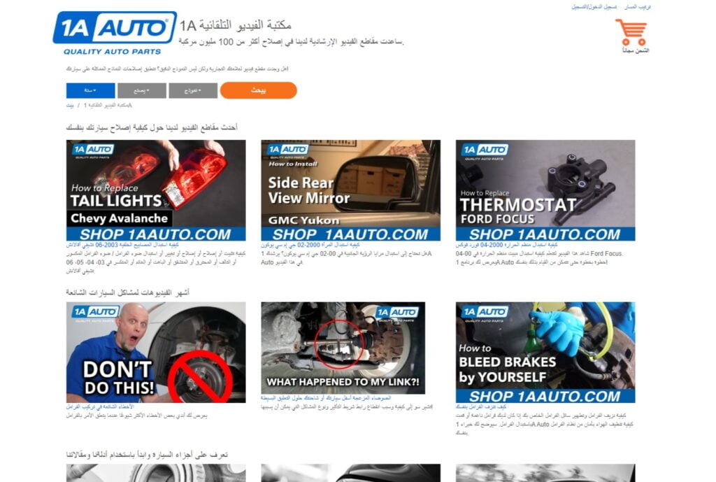 • استخدم محرك البحث الخاص بموقع 1A Auto للعثور على دروس حول موضوع معين، على سبيل المثال، إذا كنت ترغب في تعلم كيفية تغيير الزيت، فيمكنك البحث عن “كيفية تغيير الزيت في نوع سيارتك.