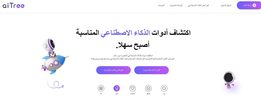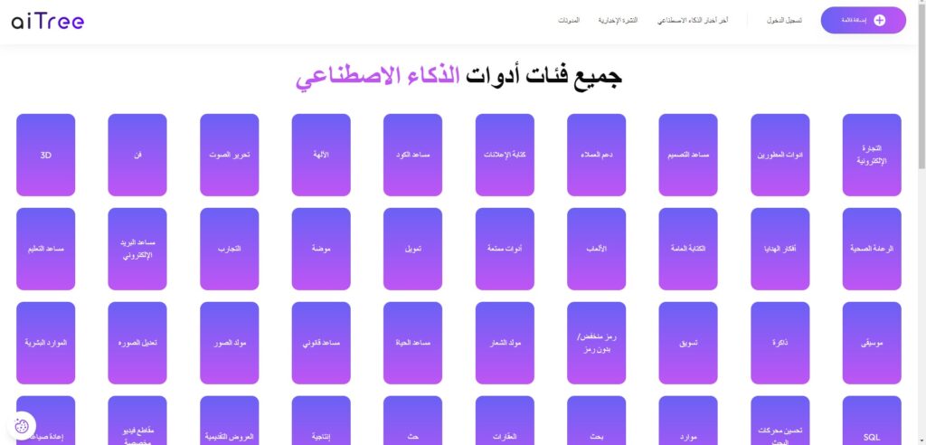 زيارة موقع aitree io أفضل مورد لأدوات الذكاء الاصطناعي للأفراد والشركات