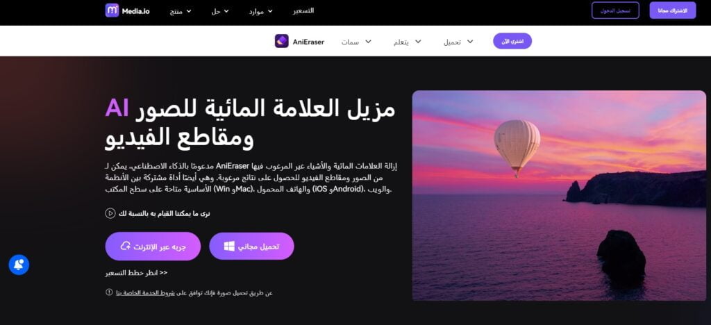 زيارة موقع anieraser.media.io أفضل موقع لإزالة العلامة المائية من الصور والفيديوهات