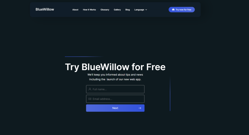 1. انتقل إلى موقع Bluewillow الإلكتروني على الويب من هنا.