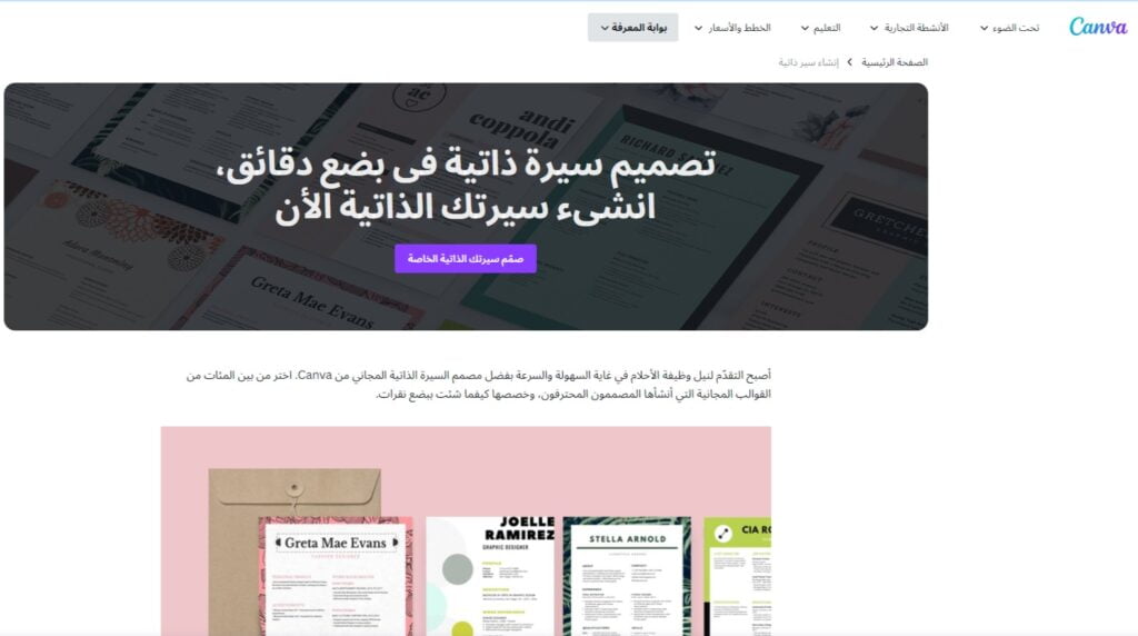 زيارة موقع canva cv أفضل موقع لتصميم سيرة ذاتية مجانا بكل احترافية
