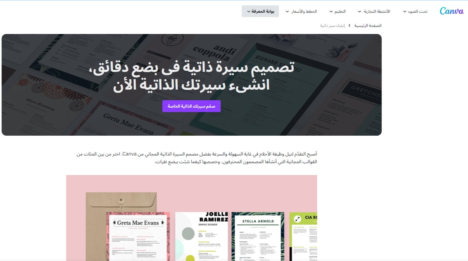 زيارة موقع canva cv أفضل موقع لتصميم سيرة ذاتية مجانا بكل احترافية