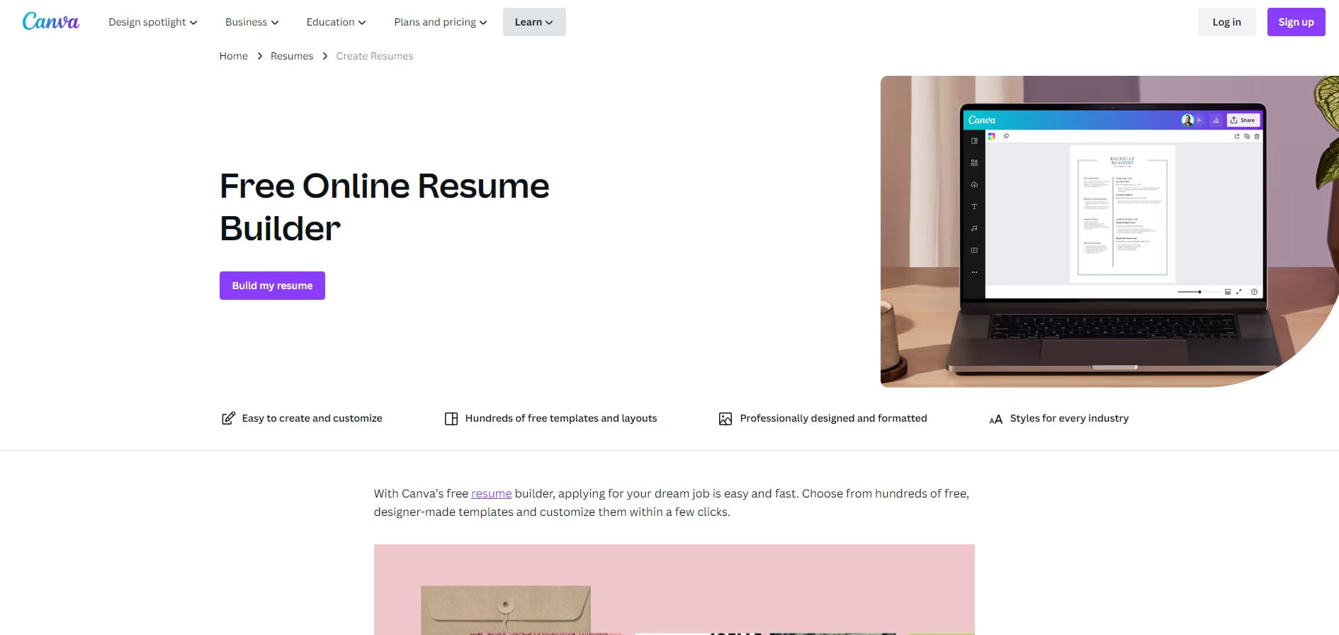 - العديد من القوالب والتخطيطات: يتيح لك Canva CV الوصول إلى العديد من القوالب والتخطيطات المجانية التي يمكنك استخدامها كنقطة انطلاق لتصميم سيرتك الذاتية وتخصيصها وفقًا لاحتياجاتك.