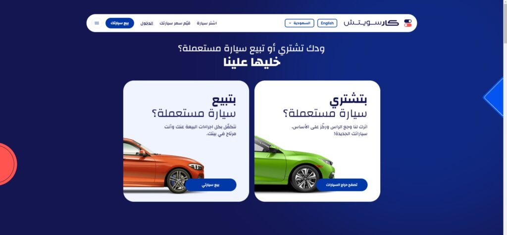 Car Switch تسعى إلى تحسين تجربة شراء وبيع السيارات المستعملة في المنطقة من خلال توفير عملية سريعة وسهلة وعادلة لكل من البائعين والمشترين، ومع كارسويتش يمكنك اكتشاف الخيارات من حراج السيارات وتستطيع شراء سيارة مستعملة مباشرة من قبل صاحب السيارة.