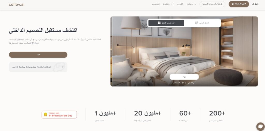 زيارة موقع Collov AI أفضل موقع بالذكاء الاصطناعي لتصميم غرف المنزل