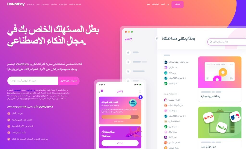 زيارة موقع DoNotPay أفضل موقع بالذكاء الاصطناعي للخدمات القانونية