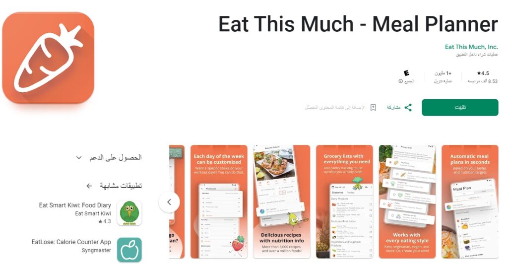 يعتبر تطبيق Eat This Much أفضل تطبيق لتخطيط الوجبات، وهو متاح لأجهزة iOS و Android ويمكنك تجميل التطبيق من خلال الروابط أدناه: