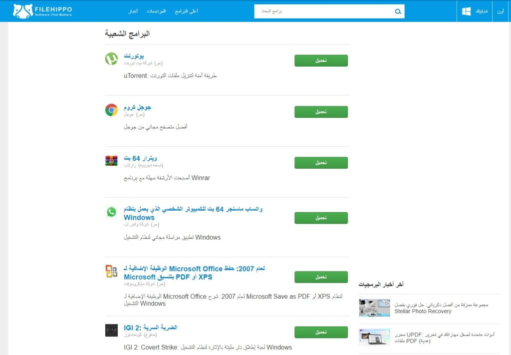 البرامج الشعبية موقع FileHippo أفضل موقع لتحميل برامج كمبيوتر مجانية كاملة