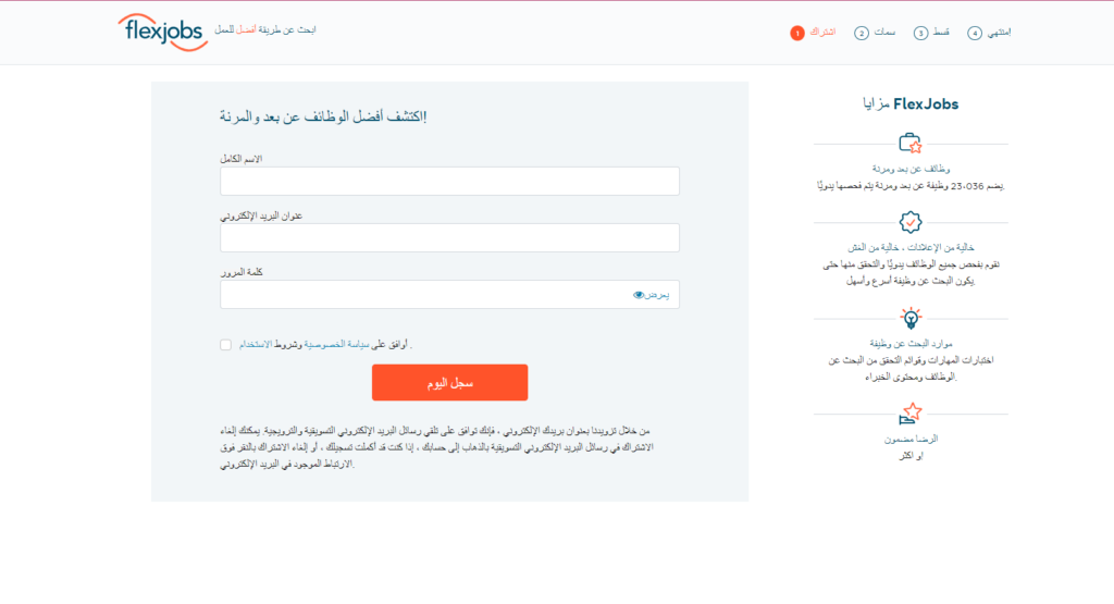 عملية التسجيل في منصة Flex jobs سهلة وبسيطة وما عليك سوى: