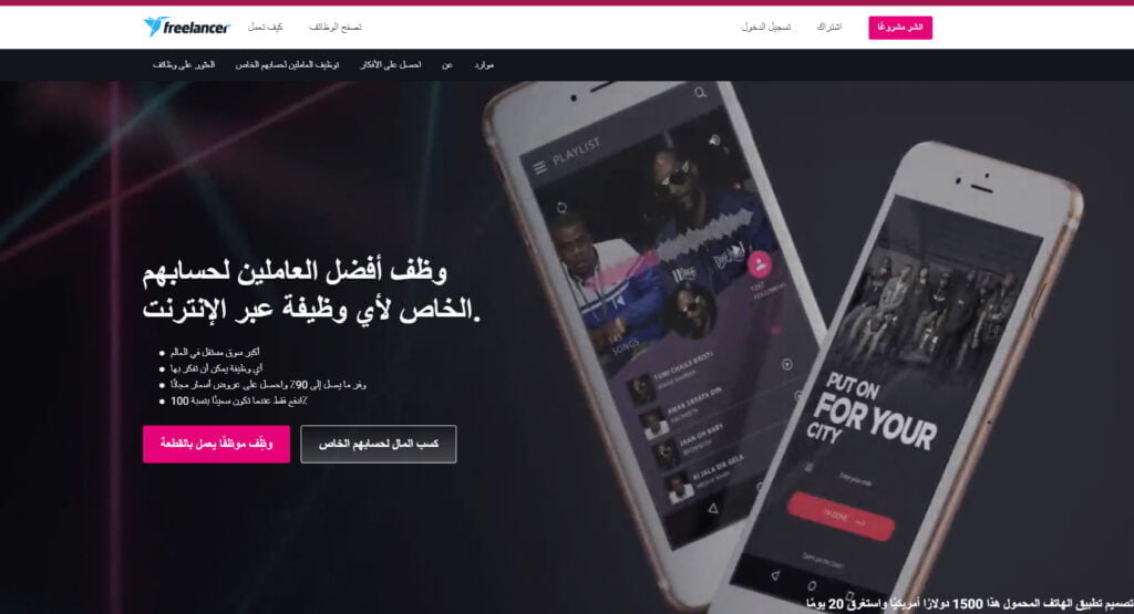 لقطة شاشة- موقع Freelancer أكبر سوق للعمل الحر عبر الانترنت وكسب المال