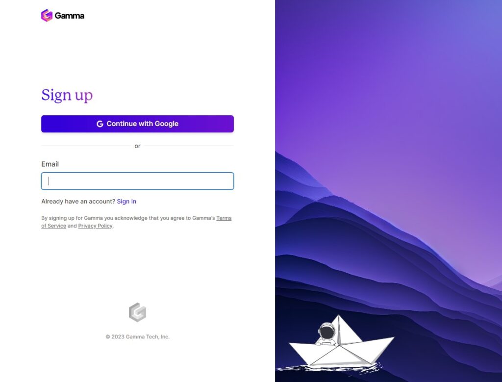 - قم بزيارة موقع Gamma.app على الإنترنت.
