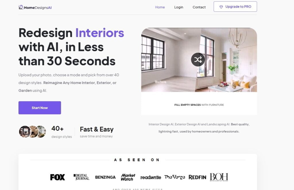 يسمح لك موقع HomeDesignsAI بتحويل وإعادة تصميم جميع أجزاء منزلك، بما في ذلك الأجزاء الداخلية والخارجية والحدائق والباحات وكل شيء اخر.