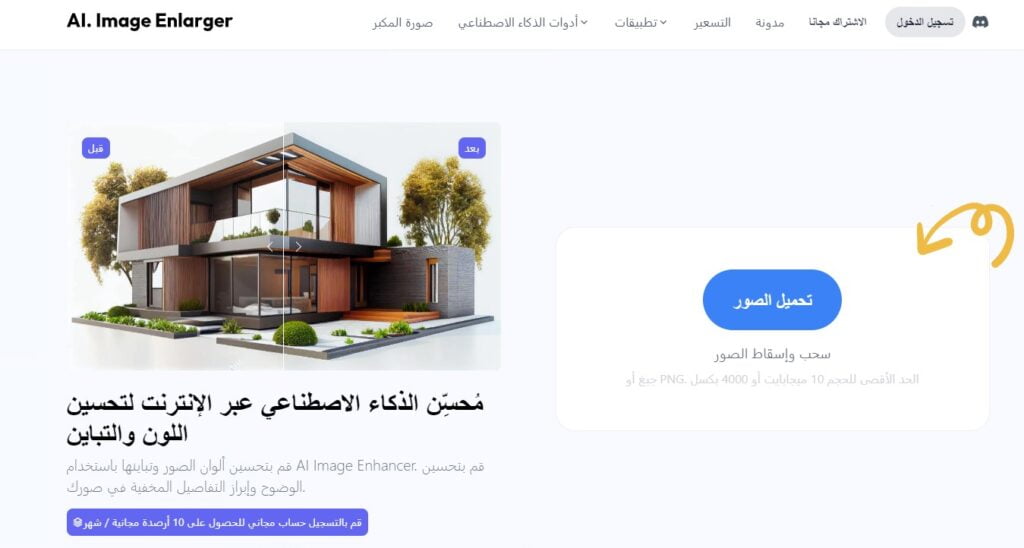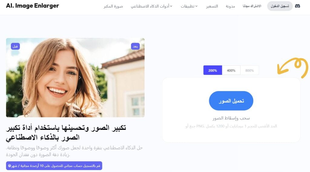 لاستخدام موقع Imglarger أفضل موقع لرفع جودة الصور بالذكاء الاصطناعي، عليك اتباع الخطوات التالية:
