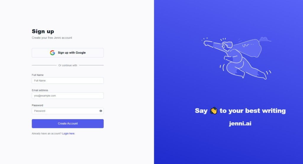 1. قم بزيارة موقع Jenni AI على الويب من هنا .