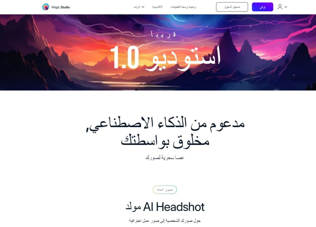 موقع Magic Studio هو واحد من أفضل المواقع التي تستخدم الذكاء الاصطناعي لتحرير الصور، يعتبر هذا الموقع وجهة مثالية للمصورين والفنانين الذين يبحثون عن أدوات متقدمة وسهلة الاستخدام لتعديل الصور بشكل محترف.