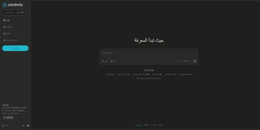 - انتقل إلى موقع Perplexity AI على الويب من هنا.