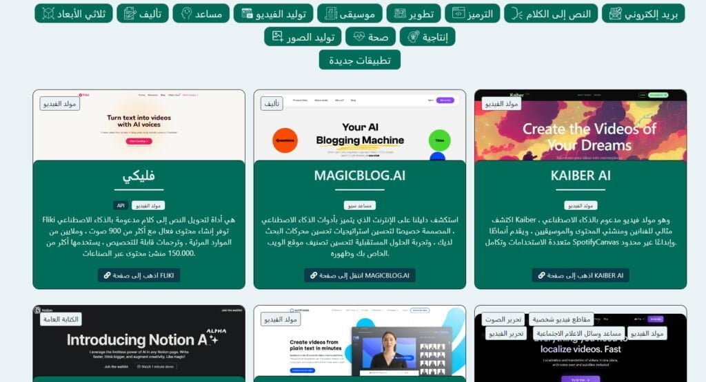 2. يحتوي الموقع على فئات متنوعة من أدوات الذكاء الاصطناعي.