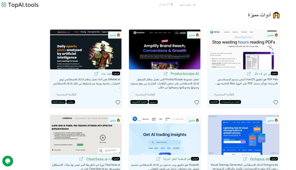 - الإشارة المرجعية والقائمة المختصرة: باستخدام topAi.tools، يمكنك وضع إشارة مرجعية على الأدوات التي تهمك، وحفظها في حسابك للرجوع إليها في المستقبل.