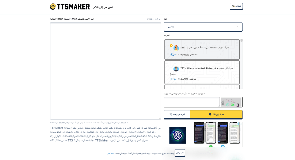 موقع TTSMaker أفضل موقع لتحويل النص إلى كلام بالذكاء الاصطناعي
