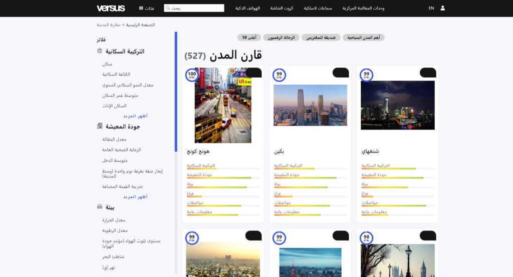 موقع فيرسوس versus هو عبارة عن منصة مقارنة عالمية توفر مقارنات غير متحيزة وسهلة الاستخدام عبر فئات مختلفة من المنتجات التقنية إلى المدن والتعليم والجامعات والمواصلات والأغذية وأجهزة المنزل والحديقة.